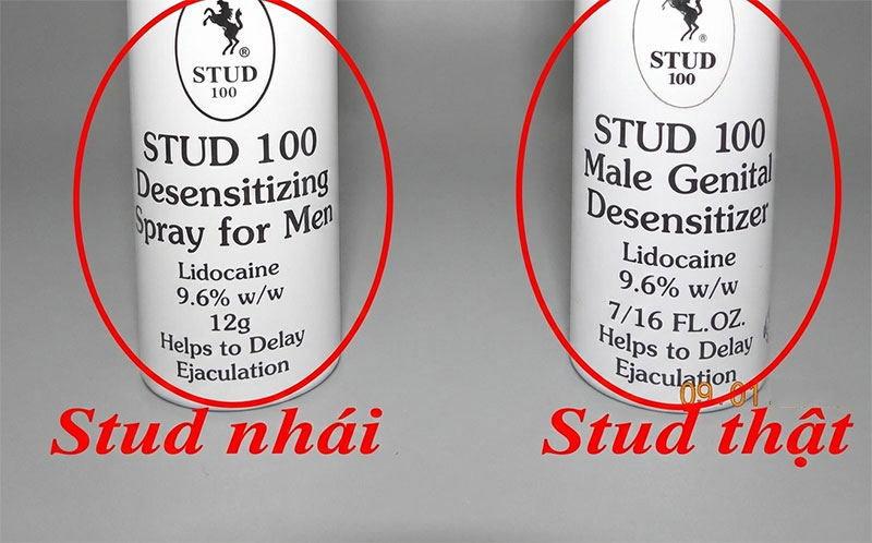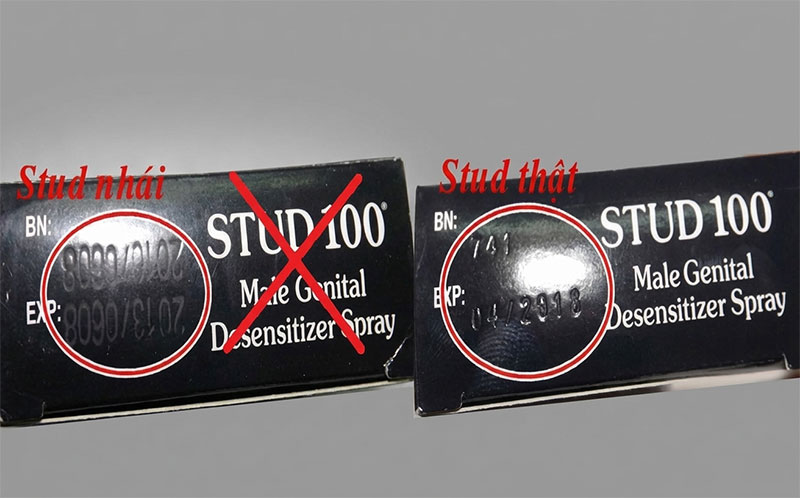 * Phân biệt Stud 100 thật giả qua vòi xịt chai: